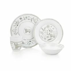 Everything Kitchens Barnyard Baby Animals 16-Piece Dinnerware Set With Mugs | “Leaping Sheep” – Lamb