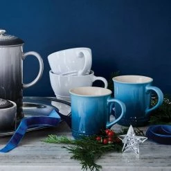 Le Creuset 1.25 Qt. Demi Kettle Tea Pot + 2 – 14oz Mugs Set | Marseille Blue