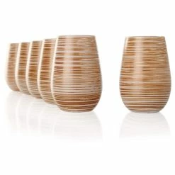 Stolzle 15.75oz Olympia Twister Glass Tumblers – Set Of 6 | White & Bronze