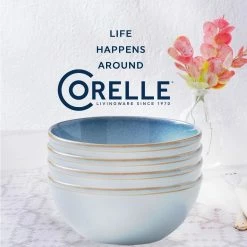 Corelle Stoneware 21oz Bowls (Set of 4) – Nordic Blue Features: