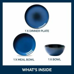 - Includes 1 dinner plate, 1 meal bowl, 1 soup and cereal bowl