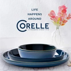 Corelle Stoneware is hardworking, beautiful, and perfect for any meal, anywhere. Designed Corelle Stoneware for the way we eat today. The higher rims on the plates and bowls make this set ideal for the types of foods we eat now, and for eating meals anywhere around the house. The handcrafted pieces use a double bead edge design for added strength. And with a mix of solid and reactive glazes, each piece coordinates beautifully with the rest of the collection – no matter which colors you choose.