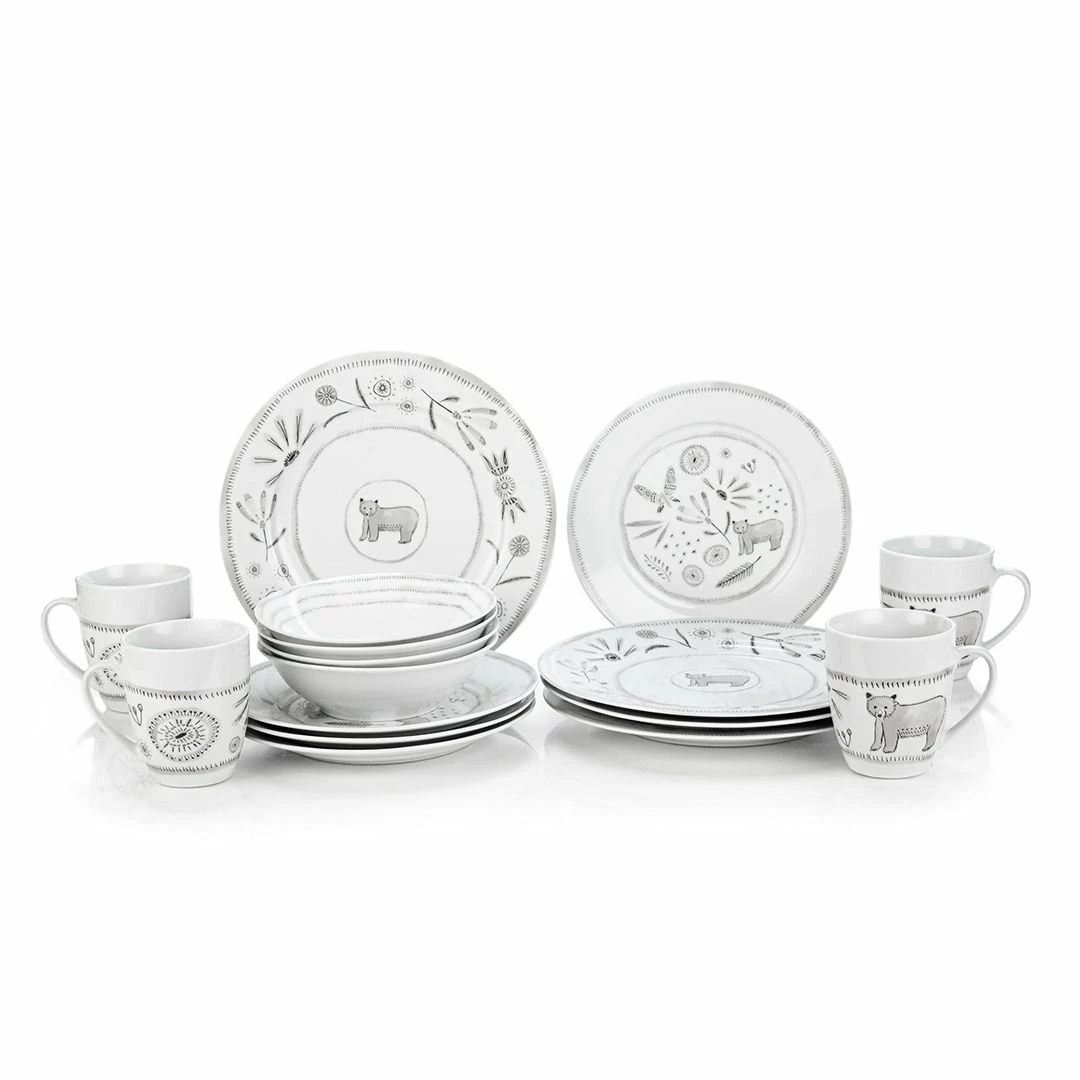 Bear With Me 16-Piece Dinnerware Set With Mugs Features: