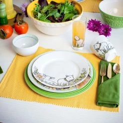 About the Collection: This Everything Kitchens Exclusive was created in collaboration with local twin-sister artists to bring you whimsical pieces inspired by the playfulness and curiosity of baby farm animals! Each design features charming hand-drawn illustrations on high-quality, dependable dinnerware that can be pulled out for special occasions or enjoyed with daily use. The “Leaping Lambs” set features energetic baby lambs frolicking, lying, and leaping. The “Hold Your Baby Horses” set features elegantly sweet horse foals prancing and exploring. The “Caprine Caper” set features popular main breeds of baby goats, including the American LaMancha (a breed characterized by their distinctive short ears), the Swiss Toggenburg, the French Alpine, the Swiss Saanen, the British Nubian, and the Swiss Oberhasli breeds. The “Have a Cow” set features Jersey calves (prized for their sweet and genial temperament) lying, grazing, and exploring.