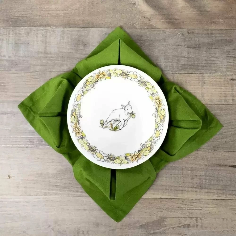 - Each piece features hand-drawn baby lambs and floral illustrations