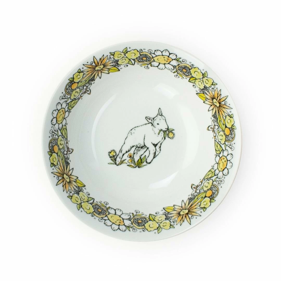Introducing the Exclusive Everything Kitchens “Leaping Lambs” 16-Piece Dinnerware & Mugs Set! Designed by a pair of local artists exclusively for Everything Kitchens, this playful dinnerware set comes with dinner service for four and includes four 10.5” dinner plates, four 7” salad bowls, four 9” side plates, and four 12 oz. mugs. Guests will be enchanted by the hand-drawn illustrations of lovely baby lambs amongst farm flowers and foliage against the white dinnerware pieces!
