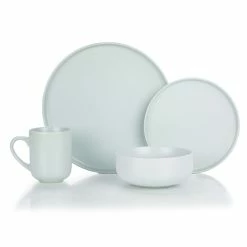 Everything Kitchens Modern Flat 16-Piece Dinnerware Set – Stone Gray Features: