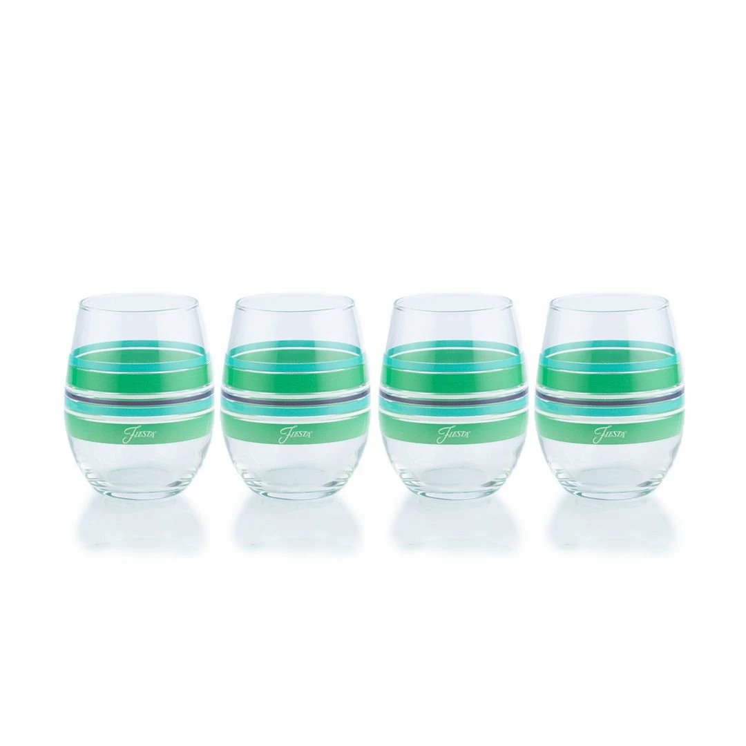 Serve your favorite wine in fun and festive Fiesta® colors with the Stemless Glassware Set in Farmhouse Chic! Crafted of lead-free high-quality glass and proudly made in the USA, these stemless glasses are perfect for serving wine & cocktails at dinner or milk & orange juice with breakfast. With Turquoise, Meadow, Mulberry, & White stripes, these elegant glasses will look great with any of your cool colored Fiesta® pieces or as a colorful accent with your existing dinnerware. Add a pop of color to your dinnerware collection with the Fiesta® Stemless Glassware Set today!