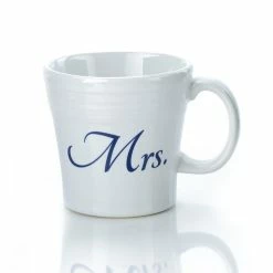 Here, here! Cheers to the happy couple following their wedding day… So, feel the calm pour over you just after you finally said “I do” with a warm, comforting brew out of the Bridal Collection 15-Ounce Tapered Mrs. Mug by Fiesta®. The abbreviation “Mrs.” stylishly adorns the side of the mug in blue cursive. Just feel how smooth and durable the mug is, which is all thanks to the vitrified lead-free ceramic glaze. A quick cycle in the dishwasher allows you to get right back to enjoying your exciting adventure together. The Fiesta® Bridal Collection 15-Ounce Tapered Mrs. Mug is there when you get up for coffee, when you get off work for tea … and when you get back from or go on that enjoyable honeymoon. Say “I do” to a durable, high-quality mug!