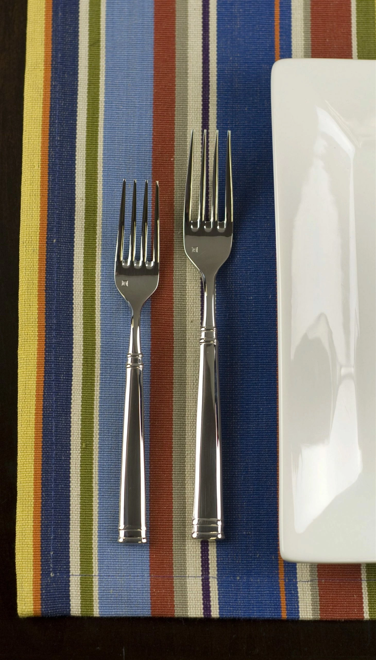 When you’re digging into something delicious at dinner, do it with this contemporary and elegant Bistro 5-Piece Flatware Place Setting by Fortessa! Crafted from heavy-gauge 18/10 stainless steel (the highest grade available for flatware), Bistro is lovely in its graceful and classic design. This 5-PC set includes complete service for 1: table fork, salad fork, soup/dessert spoon, tea spoon, and table knife. These contemporary utensils have softly rounded handles for comfort and are banded for added flair. This setting makes a style statement while blending with many dinnerware designs. Whether you’re just starting your Bistro collection, adding this 5-Piece Set to enlarge your current flatware collection, or buying 1 or 2 sets for your minimalist kitchen, when you make this your daily metalware, you’ll enjoy setting the table a lot more!