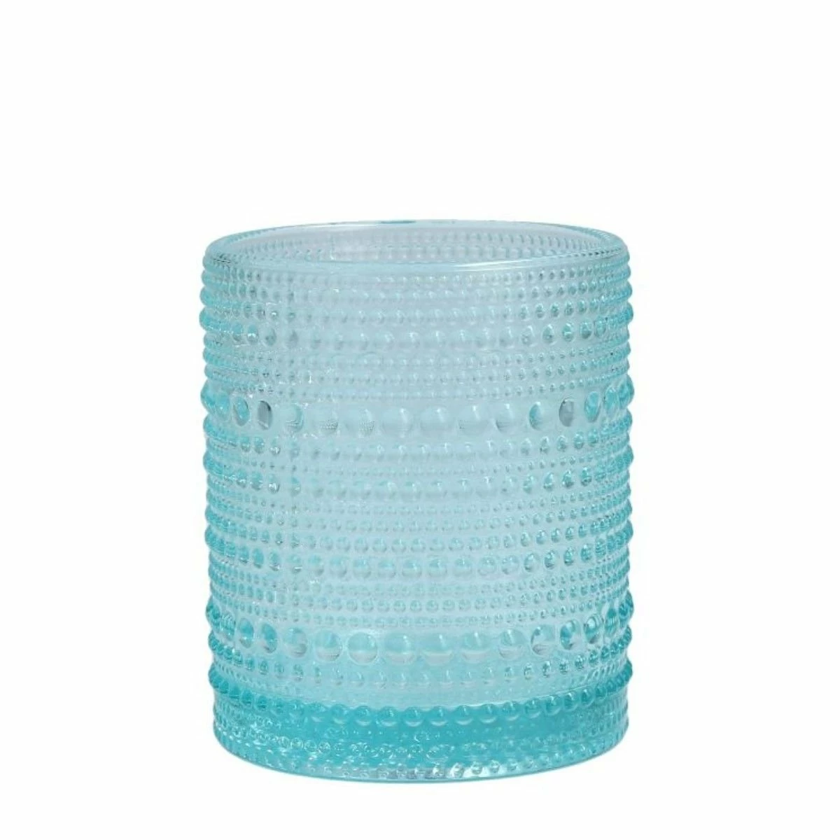 Add an eye-catching texture to your table setting with the Jupiter Double Old Fashioned Glass in stylish Pool Blue. Inspired by vintage glassware found in Parisian flea markets, the Jupiter Collection features an intricate beaded detailing around the glass for a unique presentation of any beverage. This vintage-style piece is made of durable, high-quality glass and has a sturdy, weighted base for a quality piece of drinkware perfect for evening summer dinner parties and everyday dining. Whether you’re serving up soft drinks around the dinner table or mixing cocktails for your home bar, this glassware from Fortessa adds another level of style. For a subtle touch of color that’ll give your table a vintage, French-style charm, try the Jupiter Collection by Fortessa today!