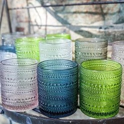 Add an eye-catching texture to your table setting with the D&V Jupiter Glass in alluring Cornflower. Inspired by vintage glassware found in Parisian flea markets, the D&V Jupiter Collection features an intricate beaded detailing around the glass for a unique presentation of any beverage. This vintage-style piece is made of durable, high-quality glass and has a sturdy, weighted base for a stylish piece of drinkware perfect for evening summer dinner parties and everyday dining. For a subtle touch of color that’ll give your table a vintage, French-style charm, try the D&V Jupiter Collection by Fortessa today!