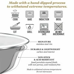 - Durable and lightweight carbon steel interior