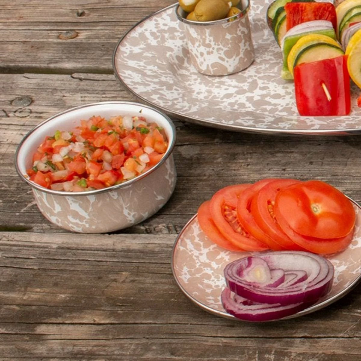 Golden Rabbit Enamelware 14oz Bowls – Set of 4 (Taupe Swirl) Features: