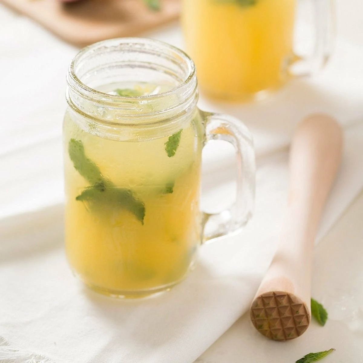 - High-quality stainless steel lid and measuring cap with glass jars and wooden muddler