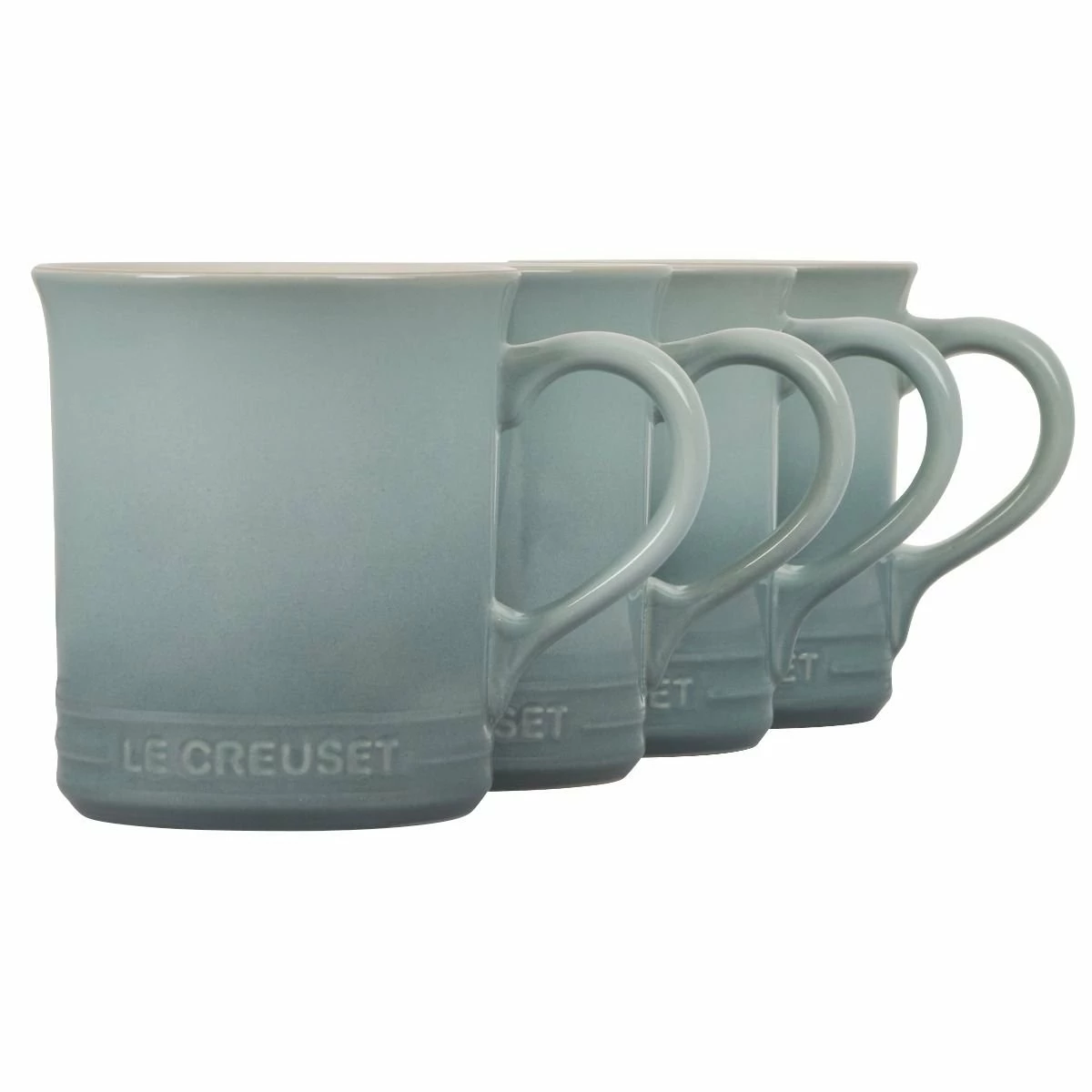 Let the serenity of a gentle ocean tide wash over you with the soothing tones of this 4-Piece 14oz Mug Set from Le Creuset’s Sea Salt Collection. Perfectly sized for enjoying all your favorite hot beverages, these mugs are the perfect starter set or addition to your existing mug collection. Le Creuset’s world-renowned stoneware ensures that these mugs retain heat longer. The glaze is resistant to scratches and stains and is non-porous to prevent flavor and odor absorption.