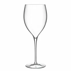 The Luigi Bormioli Magnifico 20oz Large Wine Glass is dedicated to maximum wine color reflection. The wide bowl narrows at the mouth to enhance and preserve the aroma of the wine – An elegant shape for a sophisticated “mise en place”. The universal shape allows for a perfect tasting experience for any wine. The accentuated epicure creates a high reflection of light which adds and enhances the color of the wine.