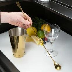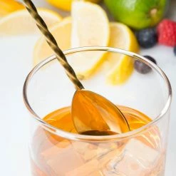 Whether its classics like Old Fashioneds, whiskey sours or martinis or something a bit more trendy – think pumpkin spice Moscow Mules – mixing drinks for your cocktail-loving friends starts with reaching for professional-quality bar tools from Barfly Mixology Gear by Mercer. Show your deft hand at smoothly mixing cocktails made to order or by the pitcher with the Mercer Barfly 17.1” Gold-Plated Japanese-Style Bar Spoon M37011GD. Barfly’s handsome bar spoon is made of a single piece of gold-plated stainless steel that won’t absorb stains or odors that could cloud the taste of fine spirits. This dual-use bar utensil has a precision-molded spoon on one end for accurate measuring, precise pouring, and gentle stirring; the other end is a slightly concave “Japanese Style” machined edge to expertly transport and mix small quantities of garnishes and ingredients. The elegant spiraled handle is designed with a twist to gently blend without bruising, and at a statuesque 17.1” long, it’s perfect for tall drink glasses and pitchers. With such alluring looks and expert performance, Barfly Mixology Gear by Mercer can turn your kitchen into the neighborhood’s trendiest cocktail lounge.