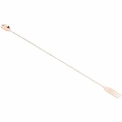 The next time it’s your turn to entertain, show off your masterful mixology skills by reaching for professional-quality bar tools from Barfly Mixology Gear by Mercer. With the Barfly 19.6” Copper-Plated Stainless Steel Bar Spoon with Fork M37017CP, you’ll show a deft hand at properly mixing pitchers of sangrias, mojitos, mint juleps, or spiked lemonades and punches for your cocktail-loving friends. Barfly’s fetching Copper-plated bar spoon is formed from a single piece of durable stainless steel that won’t absorb stains or odors that could cloud the taste of fine spirits. This dual-use bar tool has a spoon on one end and a fork on the other. The spoon is precision-molded for accurate measuring, precise pouring, and gentle stirring; the fork end is designed with long tines, two of which are barbed, to securely spear fragile garnishes like fresh and candied fruit, olives, and onions. The elegant spiraled handle is designed with a twist to gently mix ingredients without bruising, and at a statuesque 19.6” long, it’s perfect for tall drink glasses and pitchers. With such alluring looks and expert performance, Barfly Mixology Gear by Mercer can turn your kitchen into the neighborhood’s trendiest cocktail lounge.