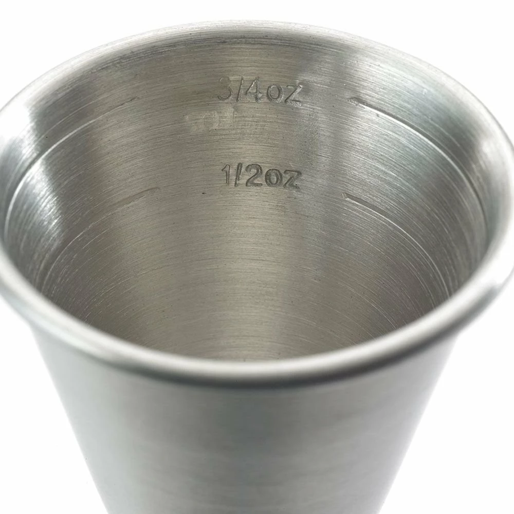 Make the perfect cocktail with this Barfly Stainless Steel Jigger! This stainless steel double jigger measures 2oz on one side and 1oz on the other—perfect for creating a classic margarita consisting of 2oz silver tequila, 1oz Cointreau, and 1oz fresh-squeezed lime juice. Inside there are internal measurement lines for even more options. Made of 18/8 stainless steel and featuring a rolled top edge for strength, this Japanese style jigger will serve your guests a fantastic cocktail every time. And thanks to its industrial-style feel and shiny steel finish, you’ll love displaying it!