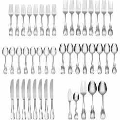 Oneida Brushed Satin Stainless Steel 45-Piece Flatware Set – Voss Features: