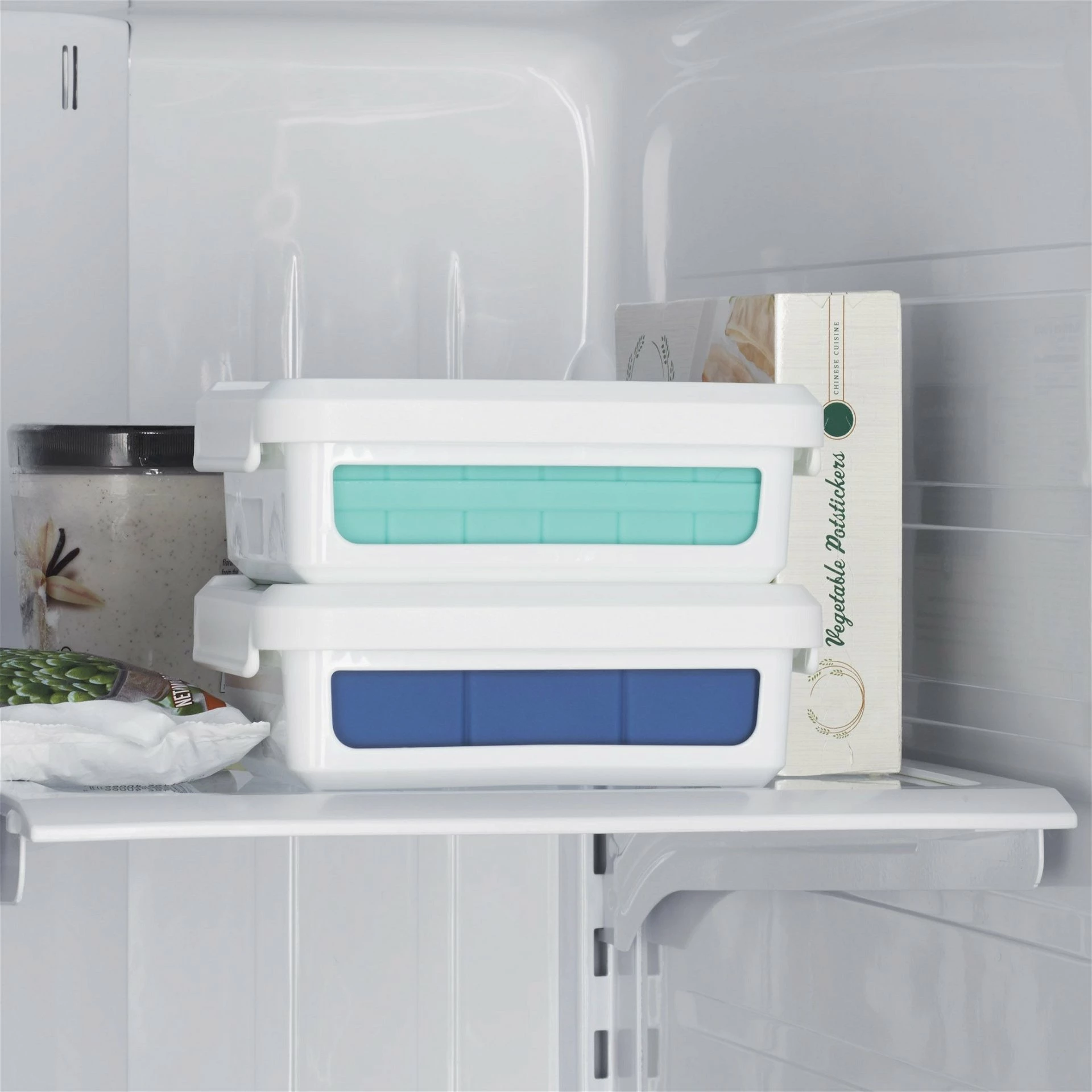 - Includes a silicone ice cube tray and a plastic container with lid for easy transport while filling and storing in freezer