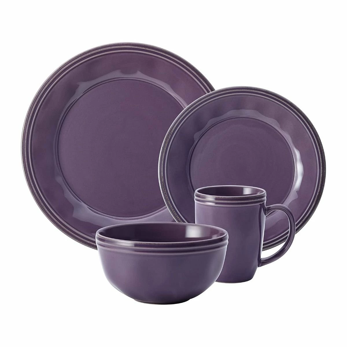 Bring a warm & inviting look to your table with the Rachael Ray Cucina Collection 16-Piece Dinnerware Set in Lavender. The Cucina Collection blends Rachael Ray’s simple, casual style with handcrafted touches & antiqued textures for a stylish set of dinnerware that’ll compliment any kitchen aesthetic. This set includes four 10.5″ dinner plates, four 8″ salad plates, four 5.5″ cereal bowls, & four 12 oz. mugs. Each piece is crafted from stoneware and finished with a stain-resistant glaze that’s microwave, dishwasher, freezer, and oven-safe for durable everyday pieces that are easy to maintain. From holiday gatherings to casual dining, the Rachael Ray Cucina Collection Dinnerware will add a welcoming touch & rich backdrop to your favorite dishes & recipes!