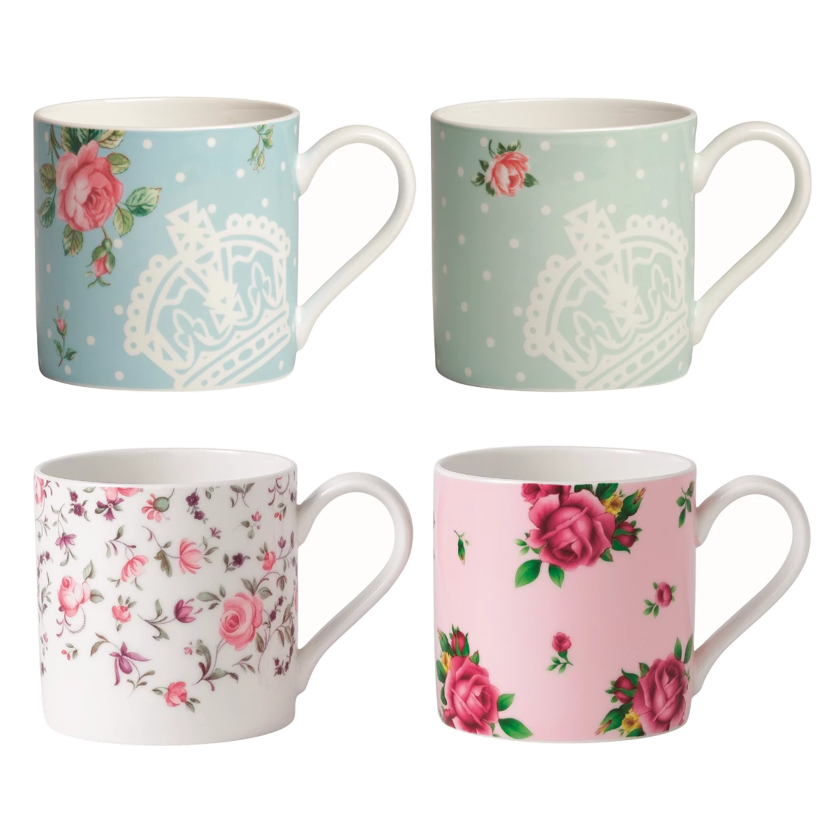 Add a playfully elegant touch to morning coffee or afternoon tea with the Royal Albert New Country Roses Collection Modern Casual Mugs Set. This set includes four mugs in beautiful floral designs that are perfect for entertaining and casual daily use. Made of bone china, these mugs are microwave & dishwasher-safe and will help create a lovely display at your table setting. Plus, they come packaged in a stylish Royal Albert pink box and make a great gift for the hostess in your life! Make your daily coffee or tea time a little more special with the Royal Albert New Country Roses Collection Modern Casual Mugs Set today!