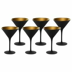 Stolzle 8oz Olympia Crystal Martini Glass Set of 6 (Black & Gold) Features: