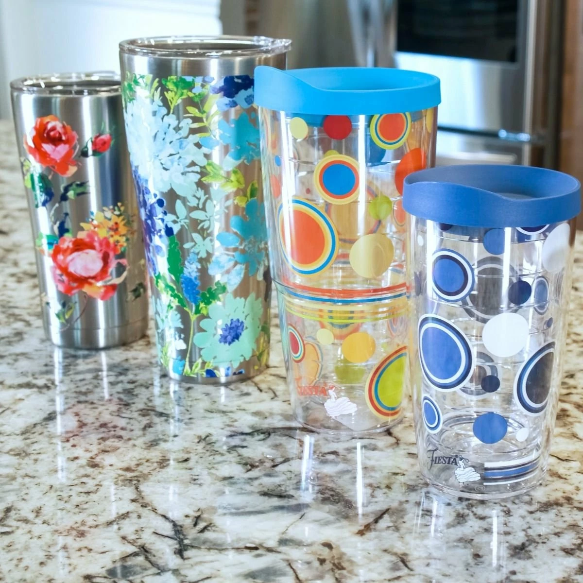 Tervis® 16 oz. Double-Walled Insulated Tumbler with Lid (Fiesta® Dots – Lapis) Features: