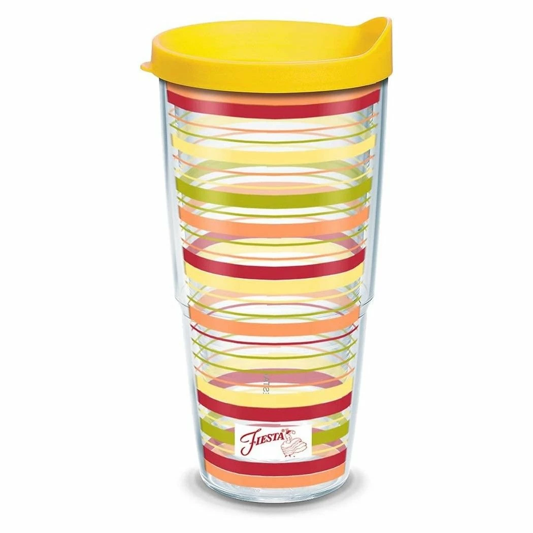 Tervis® 24 oz. Double-Walled Insulated Tumbler with Lid (Fiesta® Stripes – Sunny) Features: